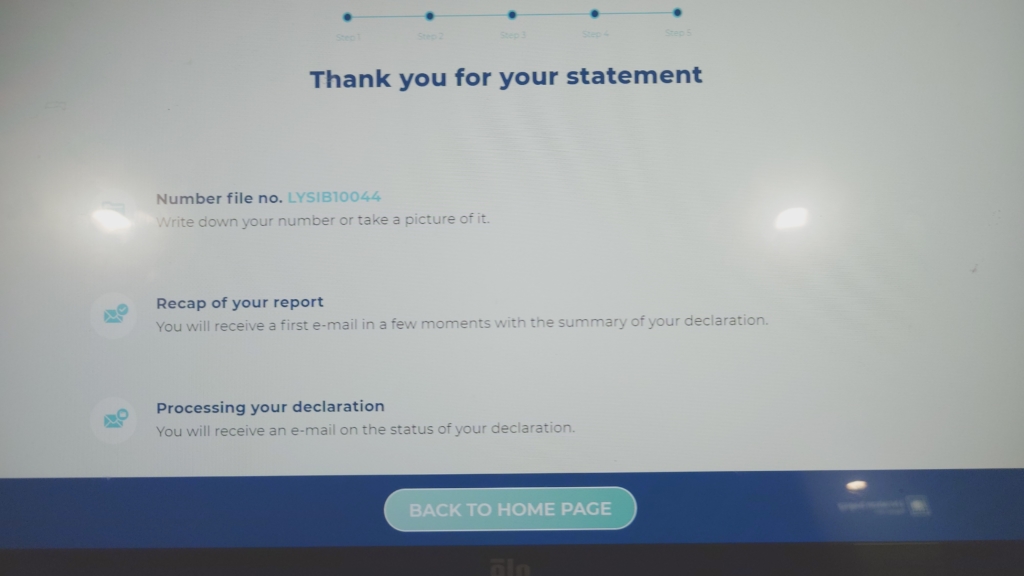 空港のロビーに出て案内所で尋ねると、「壁にあるインターホン(カメラなし)で申告をしろ」とのことフランスはもちろん英語も怪しい自分にとっては高いハードルでしたが、何とか担当の方と話をすると、奥から出てきてくれました。