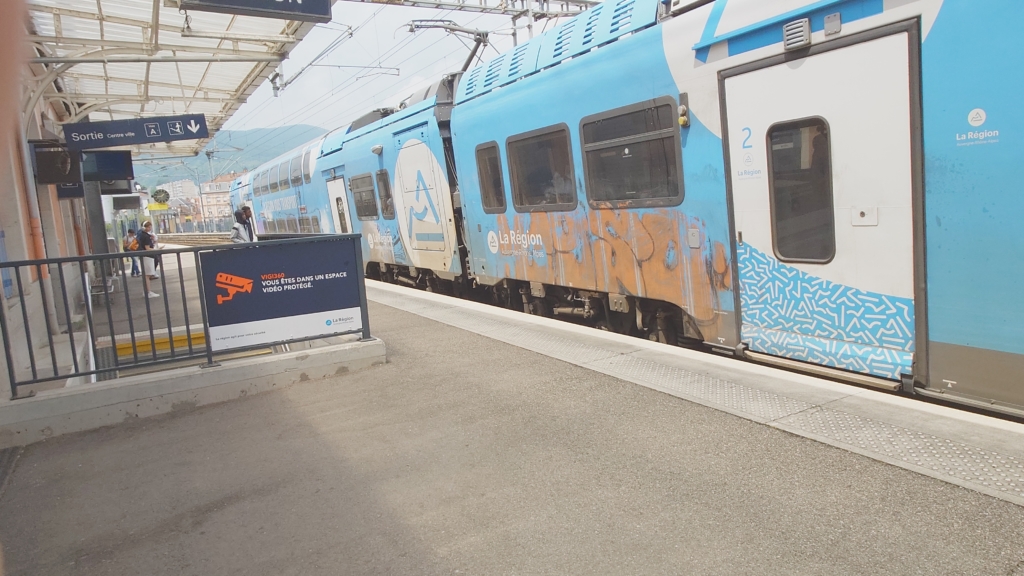 当初予定は7時16分発の電車に乗る予定でしたが、買い物で時間を要したため12時16分発と約5時間遅い出発になりました。途中ボアロン(Voiron)まで行って、一昨年のゴールであるル・グロン=ラン(Le Grand-Lemps)まで引き返しました。