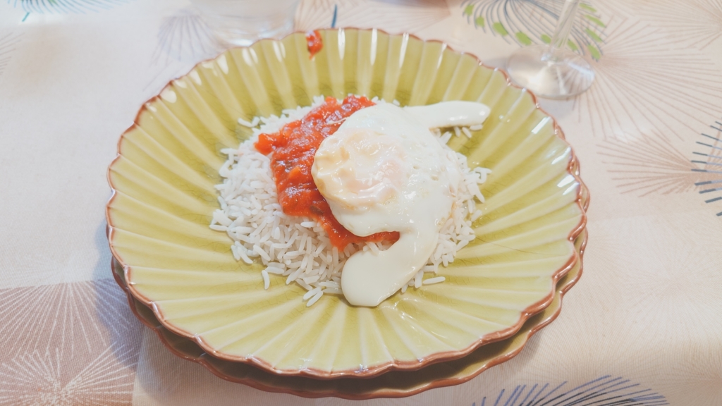 お米とトマトピューレと目玉焼き