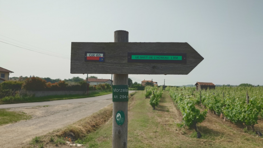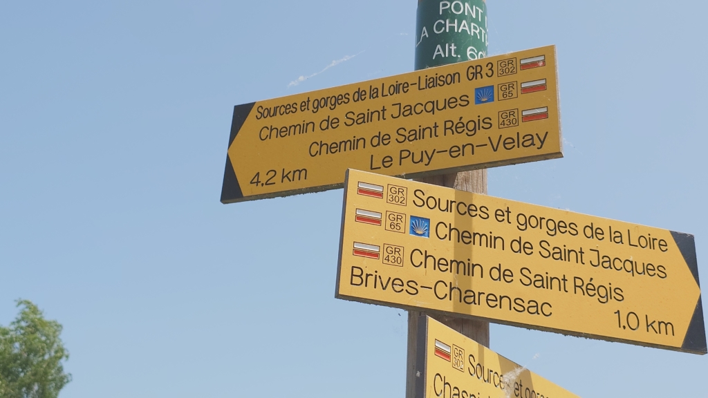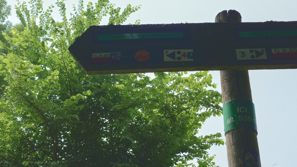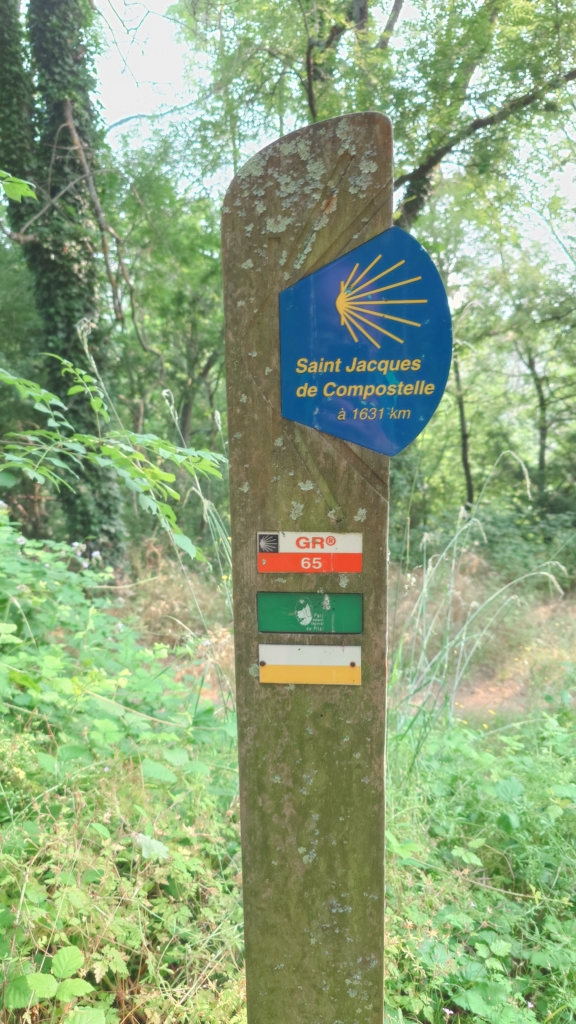 そして巡礼路とGR(フランスのハイキングコース)65が一体となった標識、必ずしも全ルートが一緒では無いので紛らわしいのですが